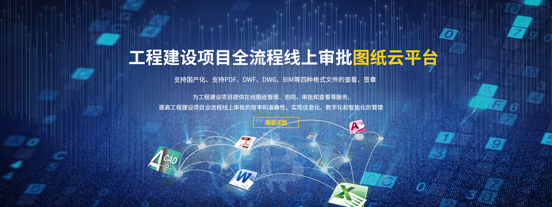 為工程建設項目提供在線圖紙管理、協同、審批和查看等服務,提高工程建設項目全流程線上審批的效率和準確性,實現信息化、數字化和智能化的管理。支持PDF、DWF、DWG、BIM等四種格式文件的查看及簽章,支持國產化。